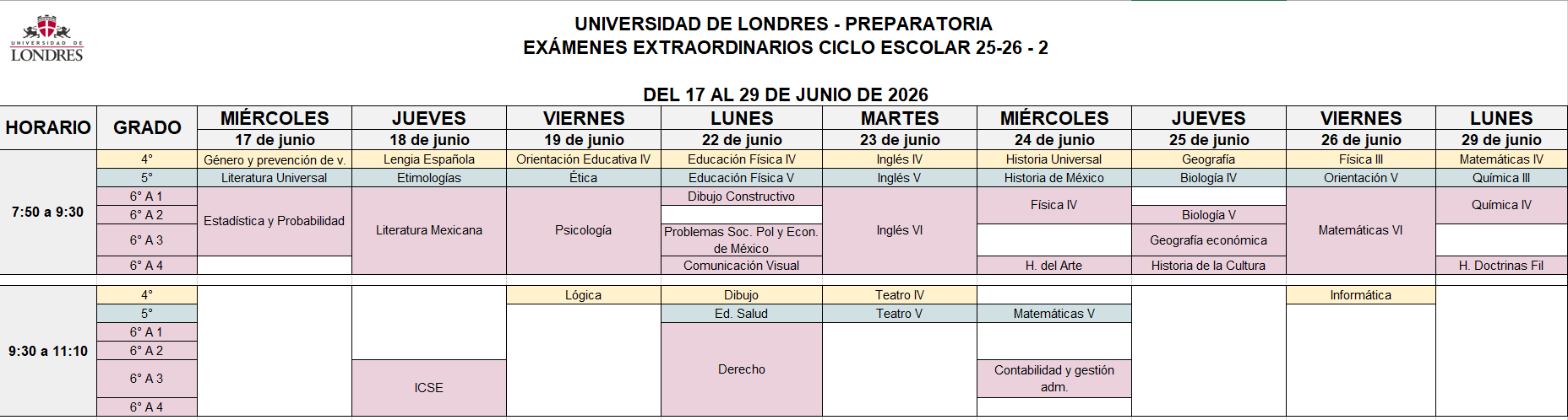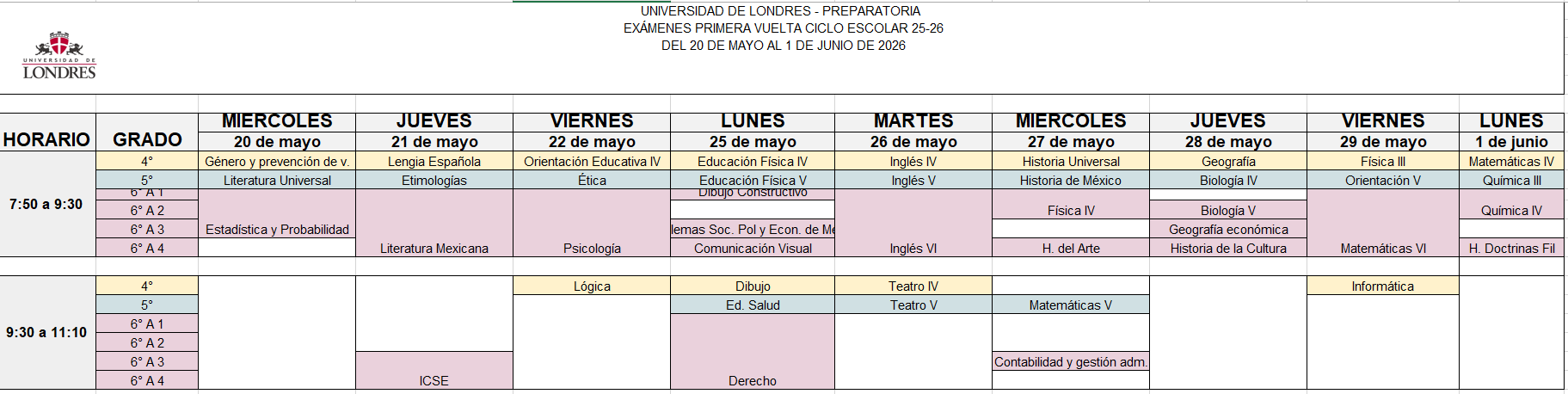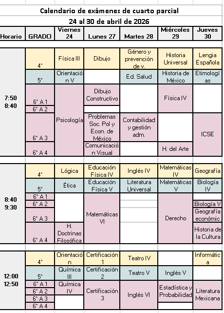Calendario ciclo 25-26Calendario cuarto parcialCalendario exámenes de primera vuelta 2025Calendario exámenes de segunda vuelta 2025Calendario exámenes extraordinarios junio 2026Calendario de pagos CALENDARIO DE PAGO PREPA CICLO 25-26